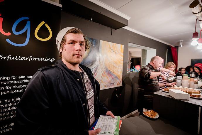 Vi träffas under den samiska litteraturfestivalen Bágo in Books i Jokkmokk. Juvvá Pittja har haft utställning och läst dikter ur sin bok inför vänner och kollegor. I publiken stod mormor Inghilda Tapio, etablerad författare sedan länge, och log stolt. När han läst klart bad hon honom läsa mer. Ta min favoritdikt, ropade hon över publikens huvuden.