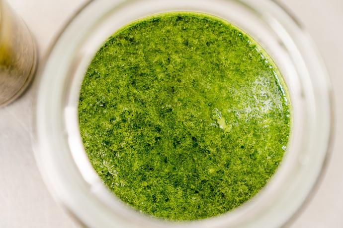 Bladen ska egentligen ätas direkt för att få den goda smaken, och särskilt om du vill ha den intensiva gröna färgen. Så fort du hettar upp eller fryser ner bladen så blir de brunaktiga och lite tråkig i färgen. Du kan bevara dem ganska länge genom att mixa bladen och lägga den i olja i burkar som du ställer mörkt och svalt. Färgen förändras då gradvis åt det brunare hållet. Om du vill få tillbaka den intensivt gröna färgen efter en längre tids förvaring, kan du mixa i lite frysta spenatkuber. Receptet nedan går bra att använda med olivolja och lime men blir ännu godare med Fjällängssyraoljeblandningen. Den passar med sin milda friskhet perfekt till rödingen.